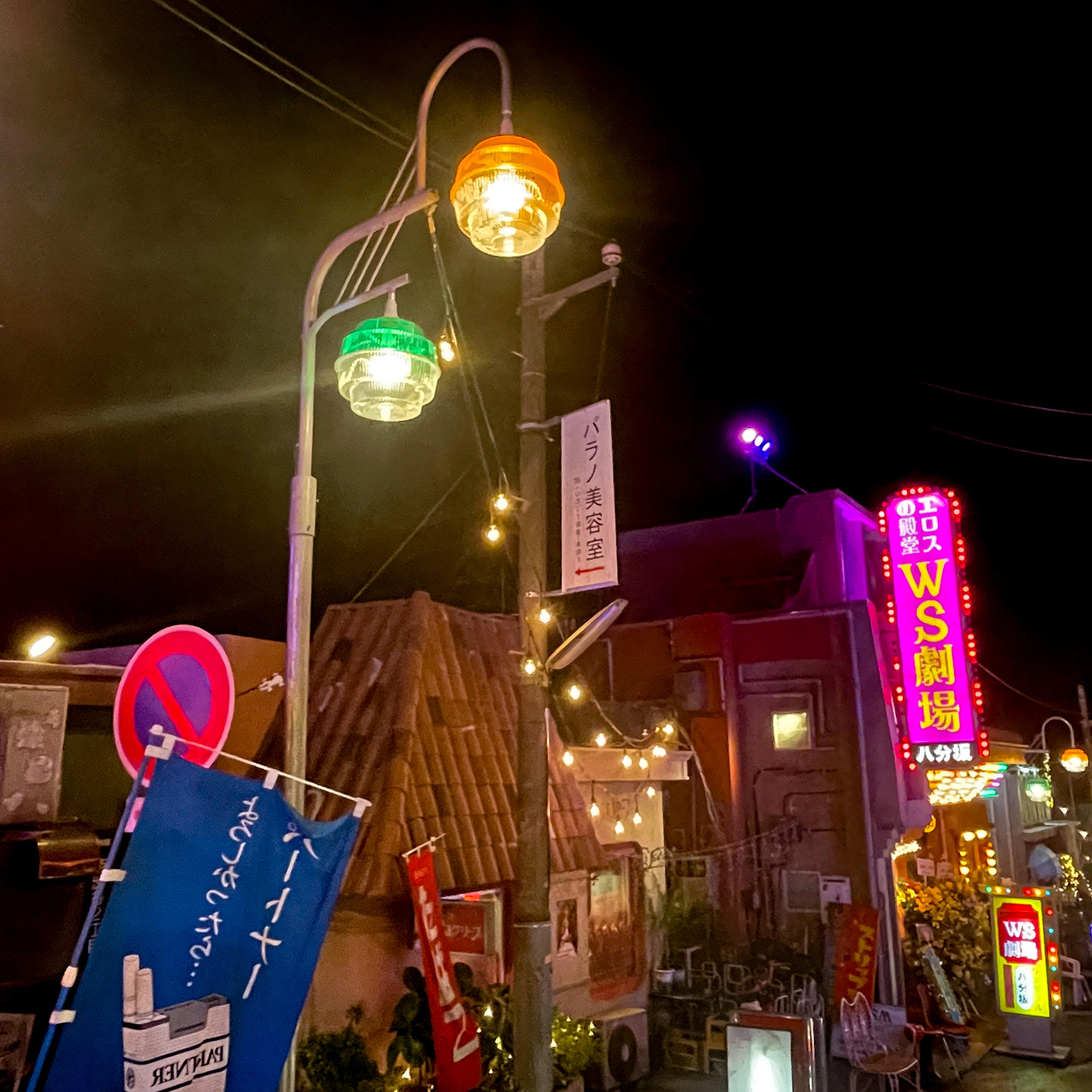 シンボル灯シンボル灯は昼間の存在も然ることながら夜間通りの賑わいの演出効果が非常に高く、商店街入口に設置する事でより活力ある景観造りへとお役立ていただいております。 -